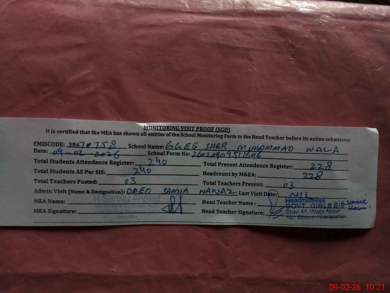 | EMIS Code: 38470758 | Name of School: GGES SHER MUHAMMAD WALA | |||