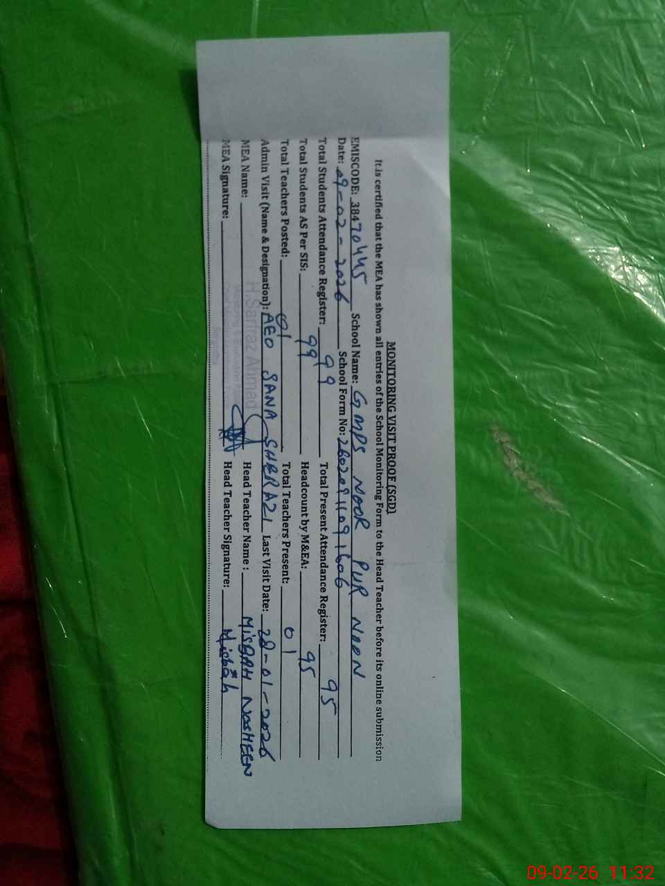 | EMIS Code: 38470445 | Name of School: GMPS NOOR PUR NOON | |||
