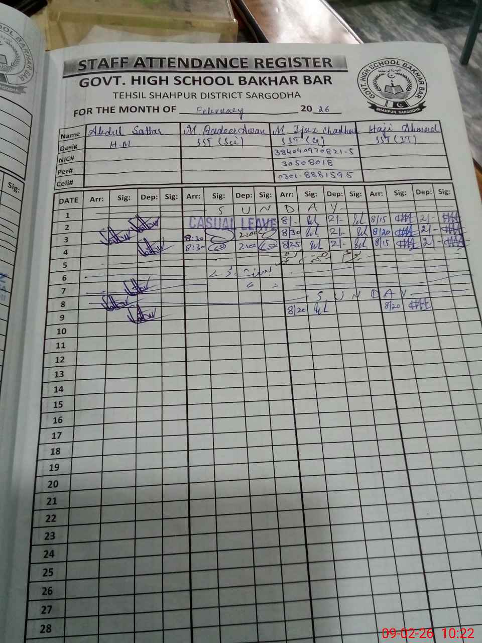| Name: Ab**** Sa**** Designation: (School Headmaster's/Headmistress's) I/C HM (SST) Phone/Cell Number: 03**** |