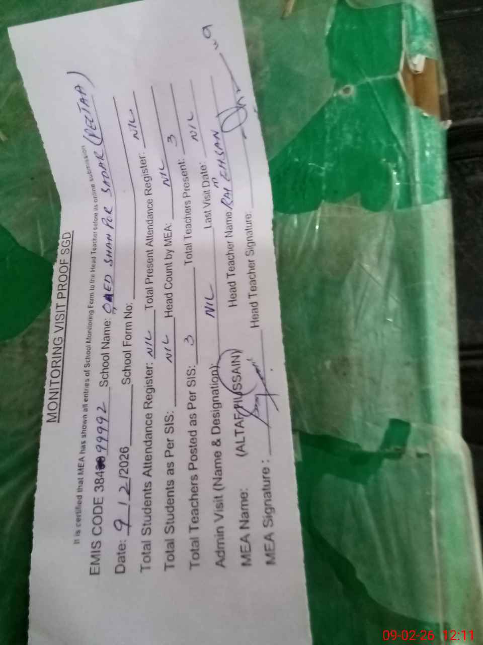 | EMIS Code: 38499992 | Name of School: QAED SHAHPUR SADAR | |||