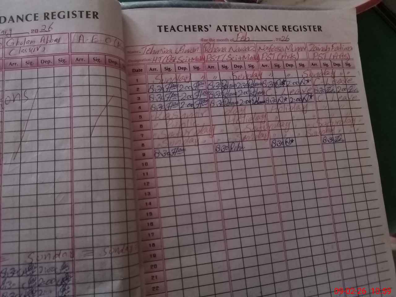 | CNIC | Full Name | Designation | R/C | Absence During Last Calender Month |
