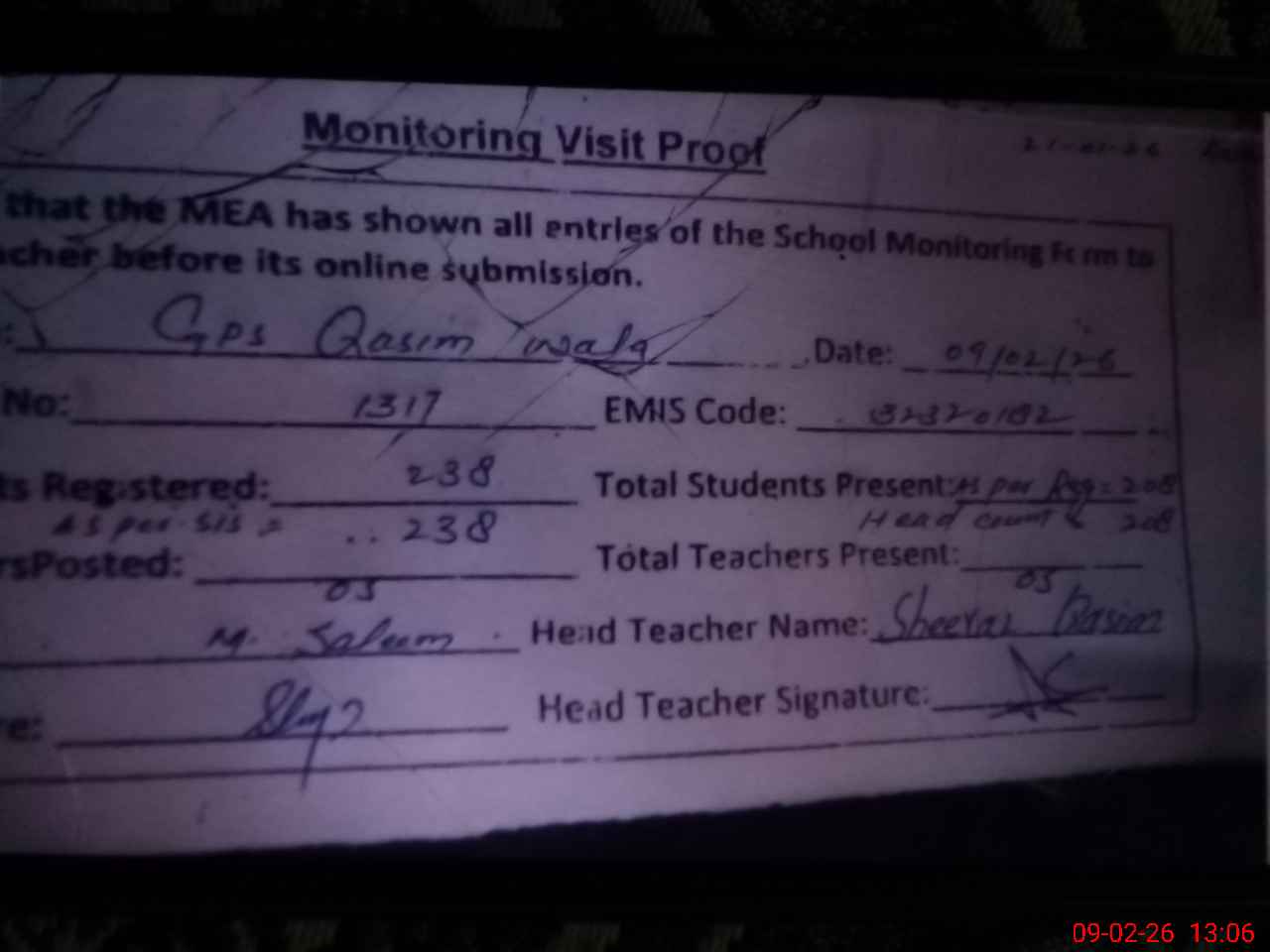 | EMIS Code: 32320182 | Name of School: GPS QASIM WALA | |||