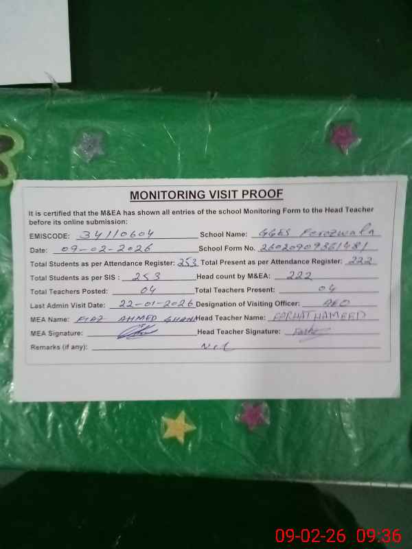 | EMIS Code: 34110604 | Name of School: GGES FEROZWALA | |||