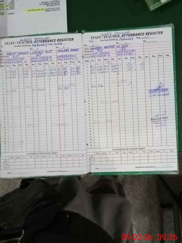 | Remarks (Use Separate Page if Required): Attendance of teaching staff and students on SIS Software is not updated NSB Record Register is not updated and fresh bank statement also not available Data as per provided by School Staff and found during physical visit | |||||
