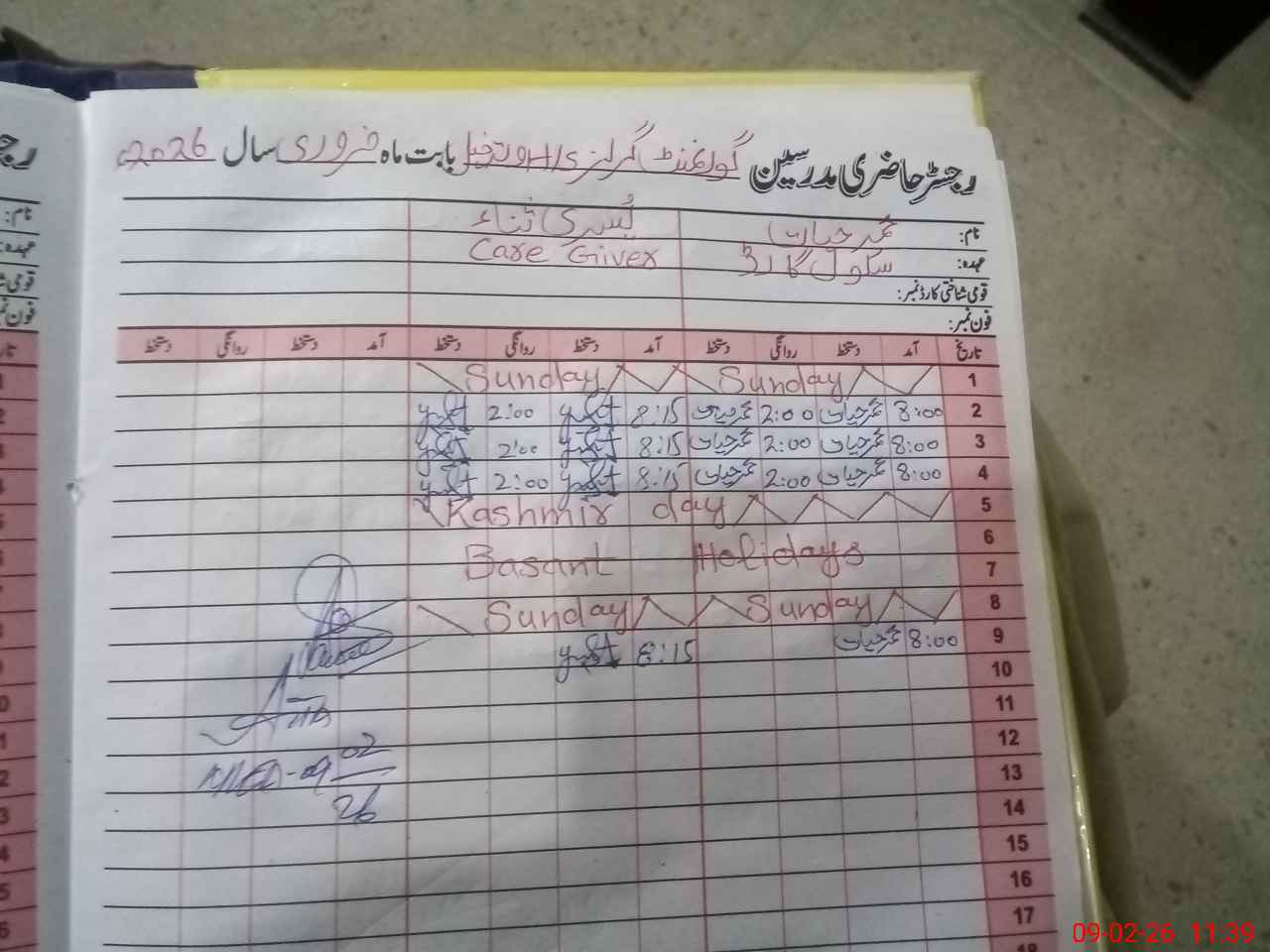 | Name: FA**** JA**** Designation: (School Headmaster's/Headmistress's) S.S.T.(GEN) Phone/Cell Number: 03**** |