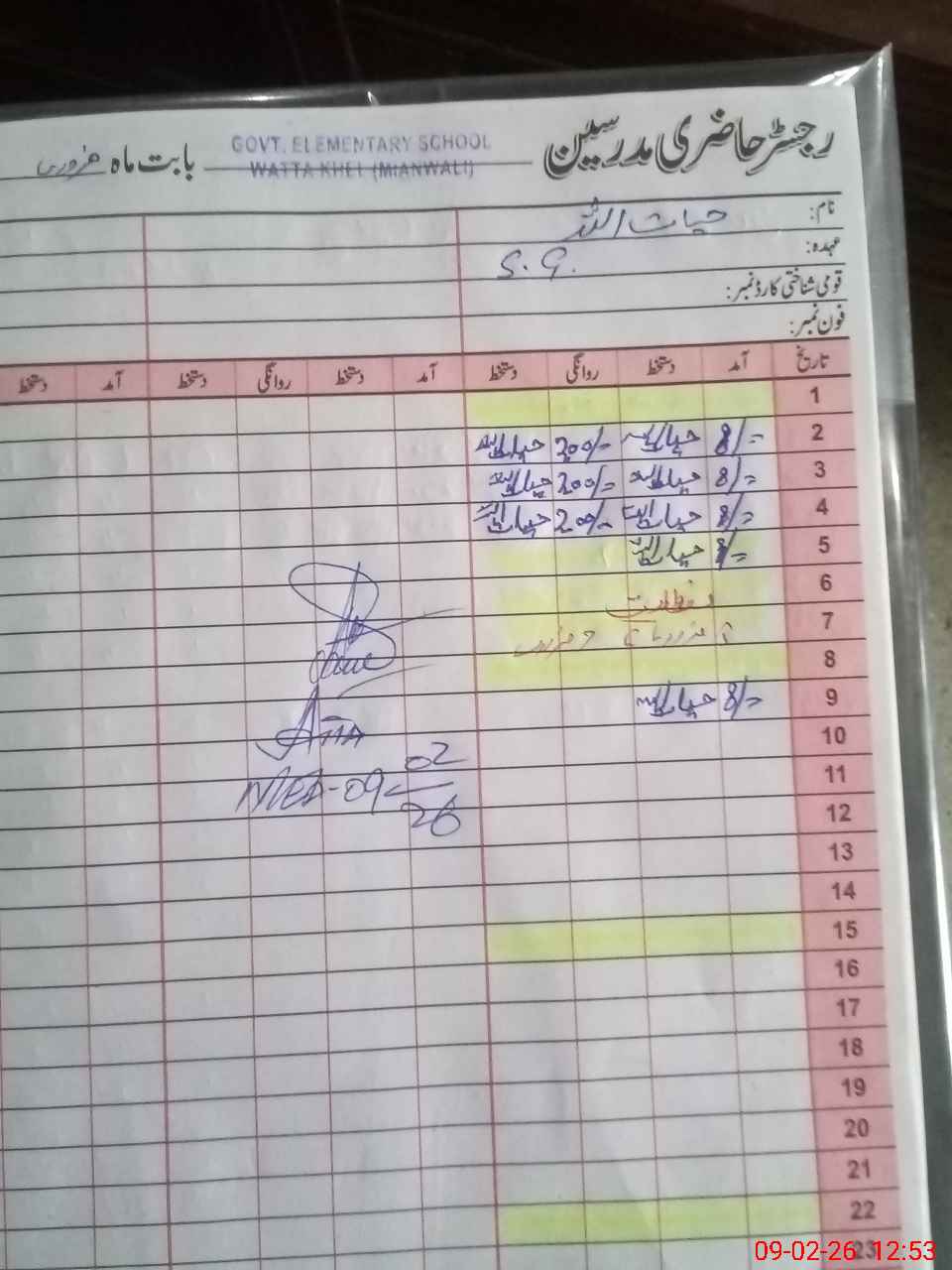 | Name: At**** Ul**** Kh**** Designation: (School Headmaster's/Headmistress's) E.S.T.(GEN) Phone/Cell Number: 03**** |