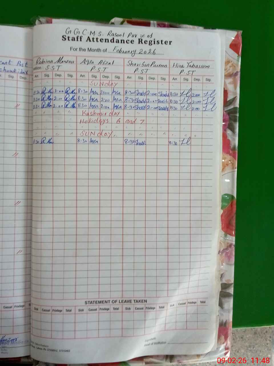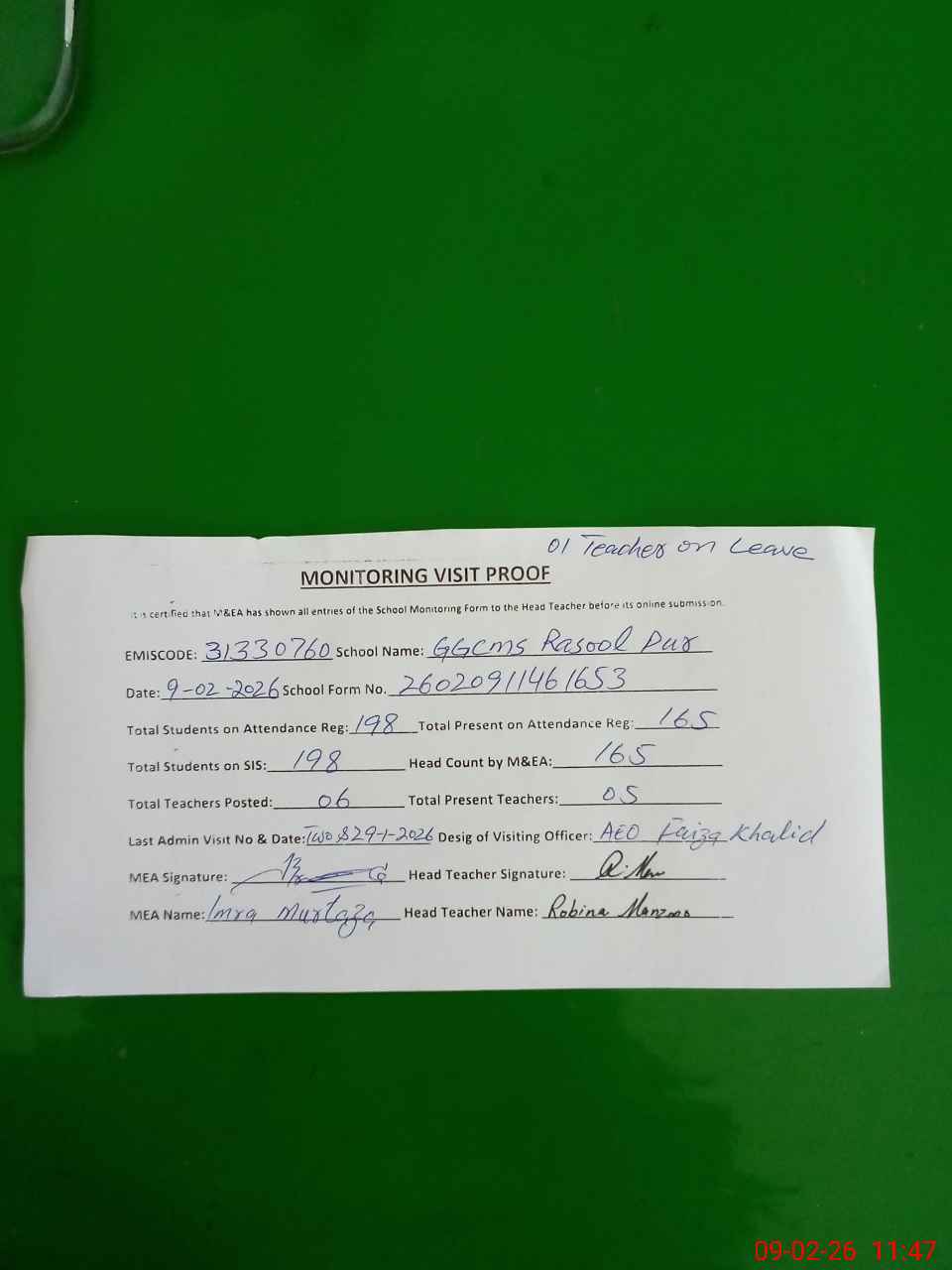 | EMIS Code: 31330760 | Name of School: GGCMS RASOOL PUR | |||