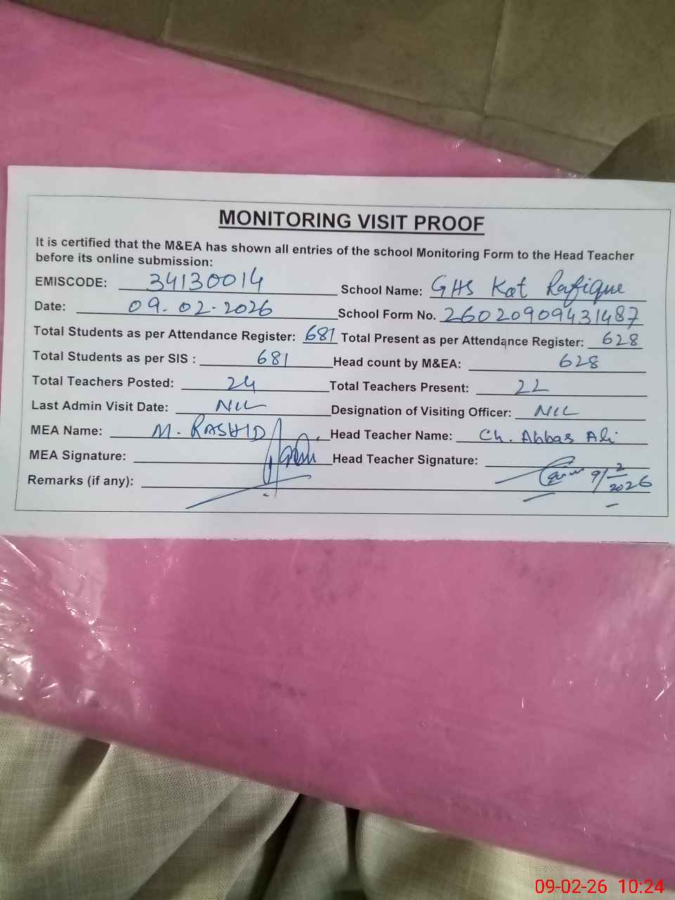 | EMIS Code: 34130014 | Name of School: GHS KOT RAFIQUE | |||