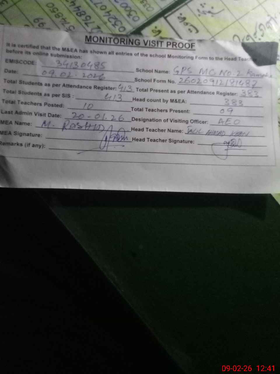 | EMIS Code: 34130485 | Name of School: GPS MC NO.02 KAMOKE | |||