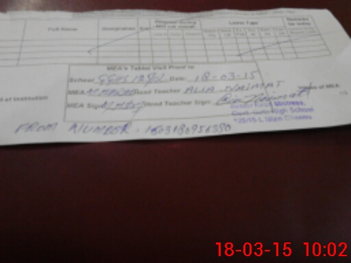 | Attendance Register | Head Teacher | MEA with School | Visit Proof |