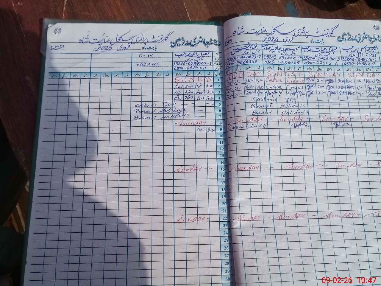 | 33**** | Gh**** Ya**** | PST Arts | Regular | 0 | 0 | 0 | 0 | 0 | 0 | 0 | 0 | 0 | Casual |
