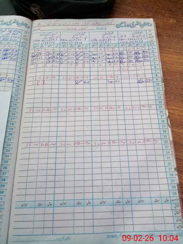 | CNIC | Full Name | Designation | R/C | Absence During Last Calender Month |