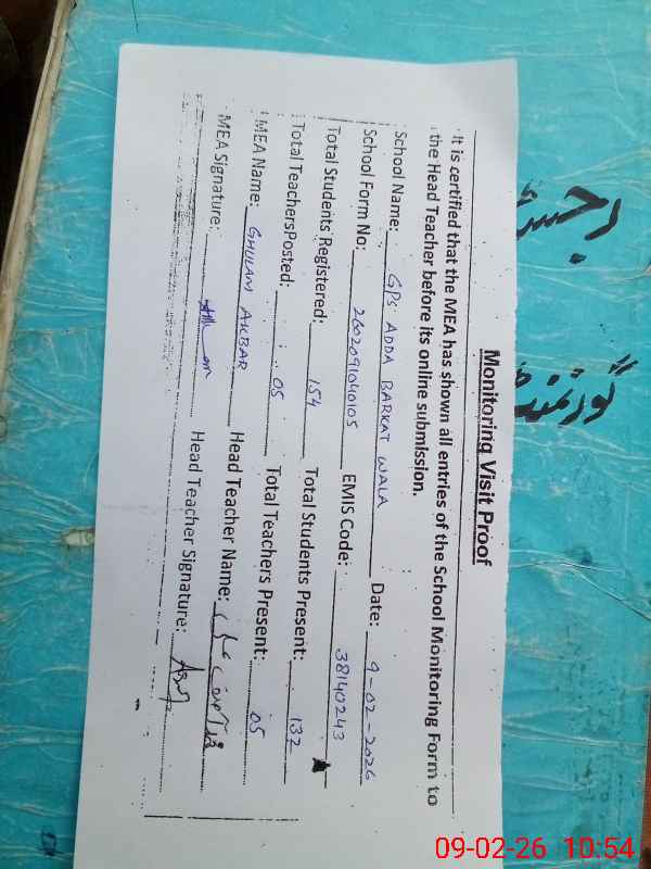 | EMIS Code: 38140243 | Name of School: GPS ADDA BARKAT WALA | |||