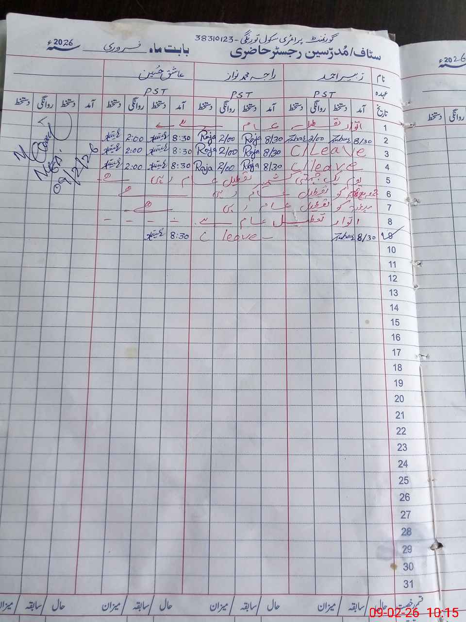 | CNIC | Full Name | Designation | R/C | Absence During Last Calender Month |