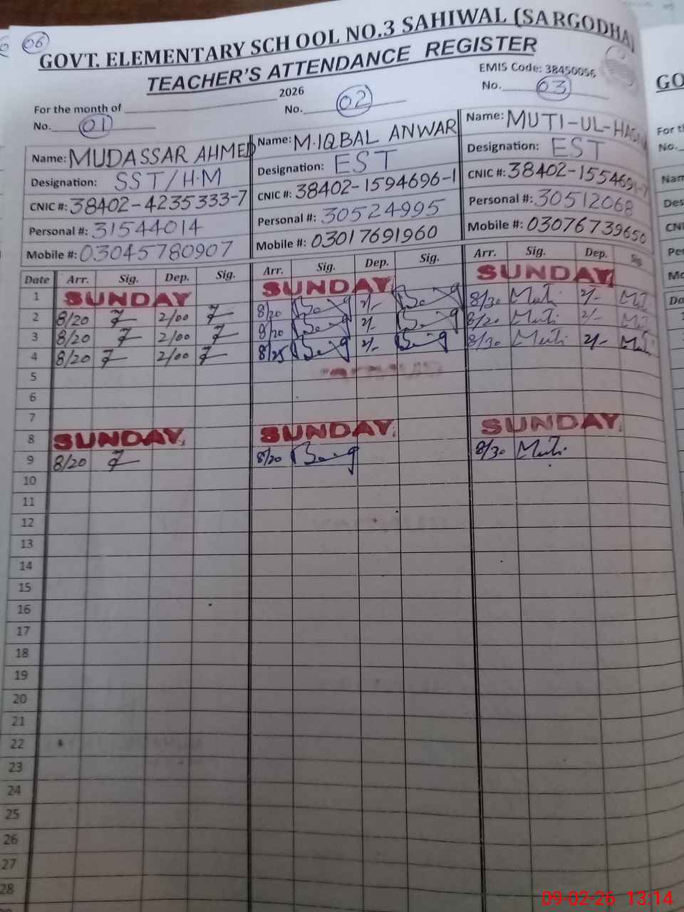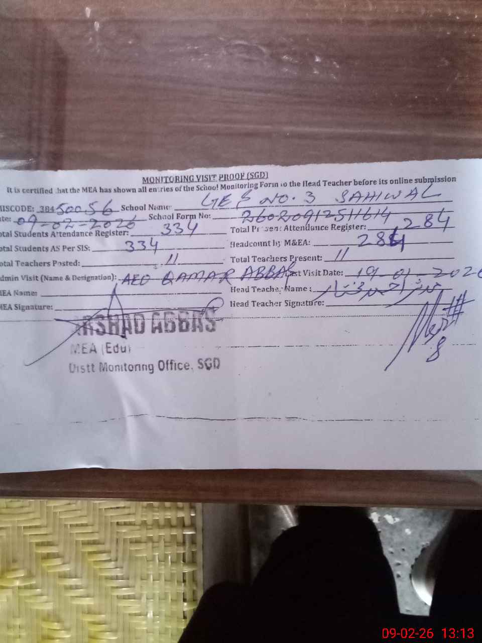| EMIS Code: 38450056 | Name of School: GES NO.3 SAHIWAL | |||