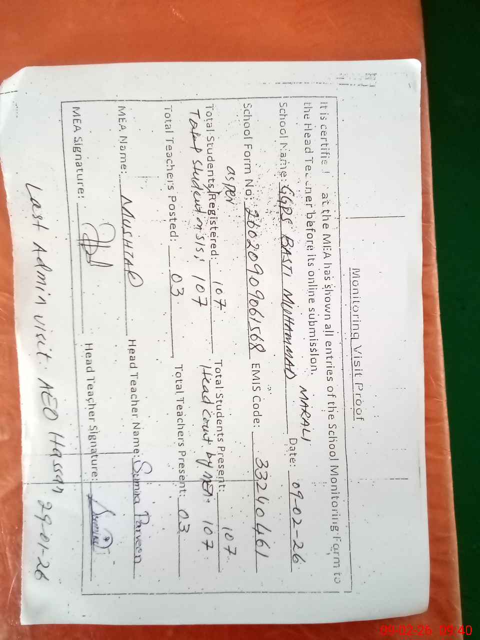| EMIS Code: 33240461 | Name of School: GGPS BASTI MUHAMMAD MARALI | |||