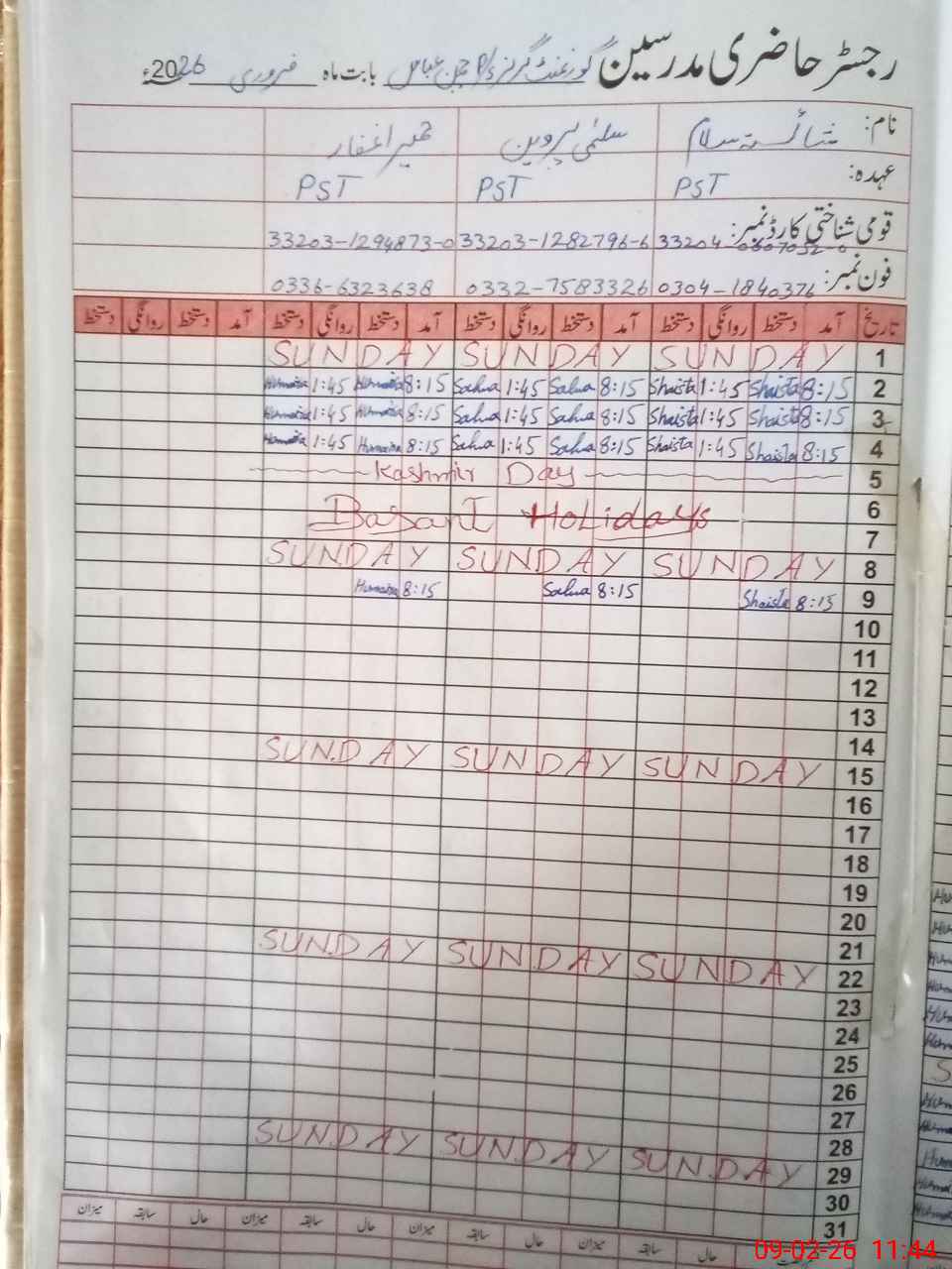 | Name: Sh**** Sa**** Designation: (School Headmaster's/Headmistress's) PST Phone/Cell Number: 03**** |
