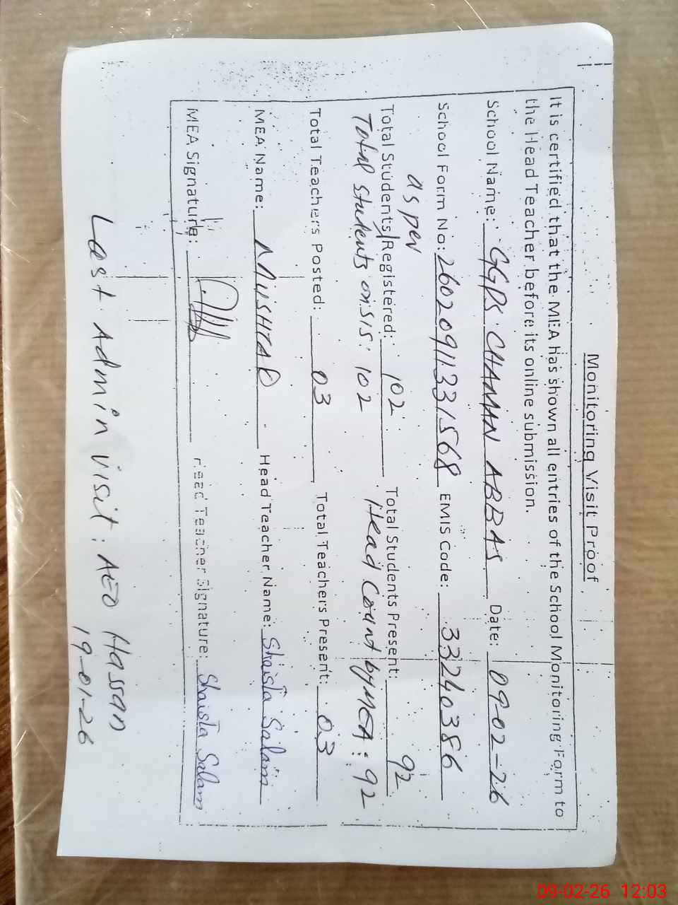 | EMIS Code: 33240386 | Name of School: GGPS CHAMAN ABBAS | |||