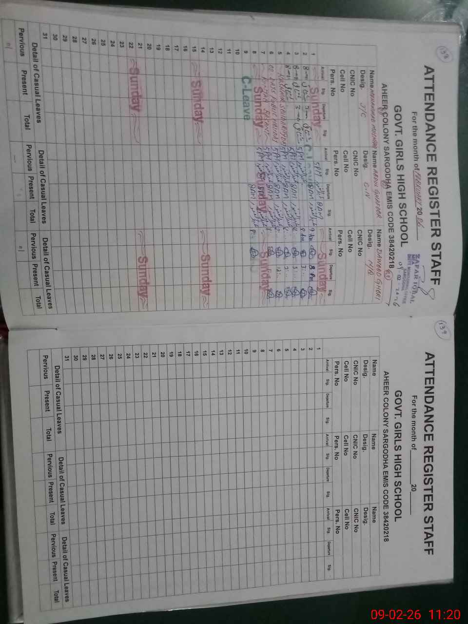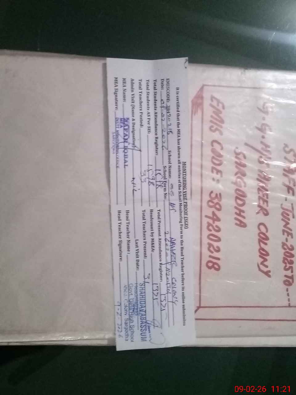 | EMIS Code: 38420218 | Name of School: GGHS AHEER COLONY SARGODHA | |||