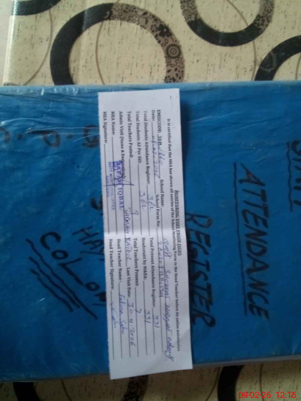 | Attendance Register | Head Teacher | MEA with School | Visit Proof |