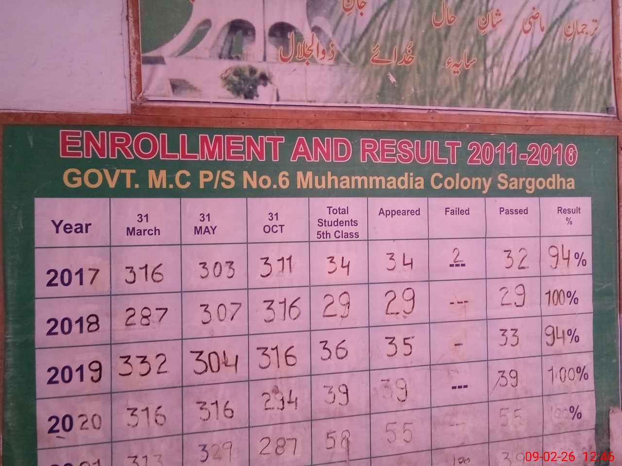 | EMIS Code: 38420396 | Name of School: GPS MC MUHAMMADIA COLONY SARGODHA | |||