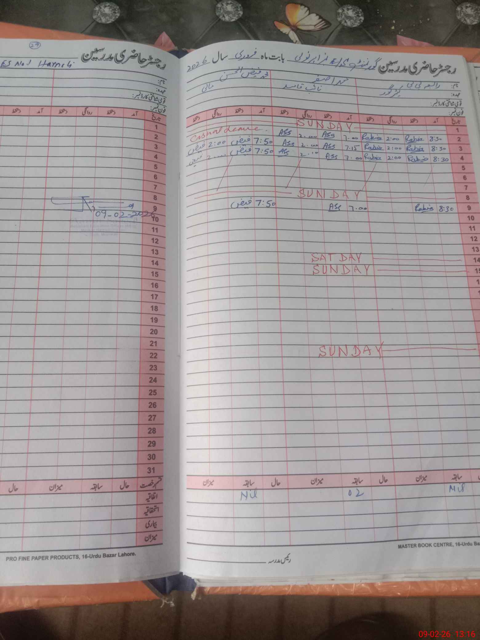 | CNIC | Full Name | Designation | R/C | Absence During Last Calender Month |
