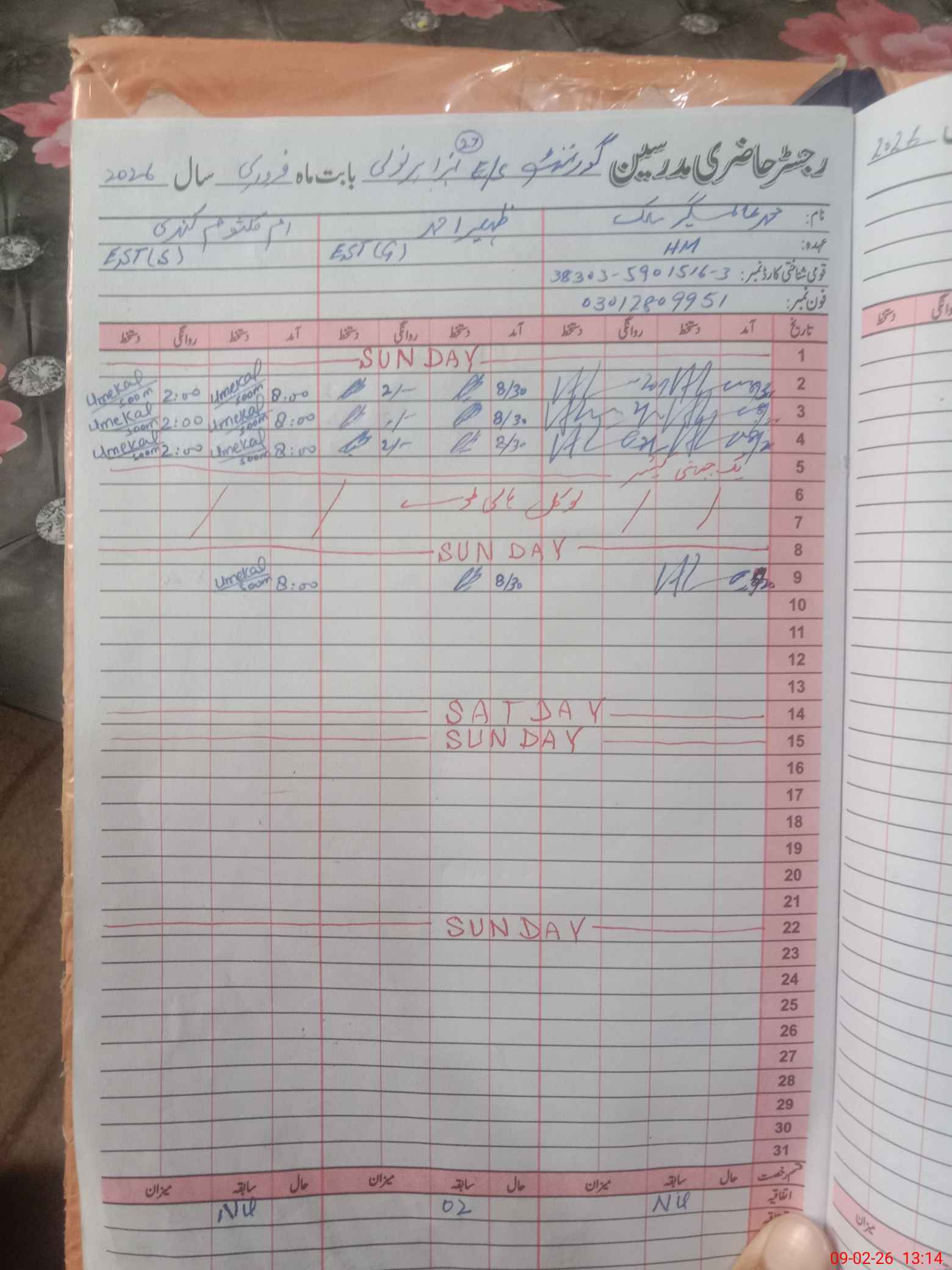 | Name: Mu**** Al**** Ma**** Designation: (School Headmaster's/Headmistress's) SST Phone/Cell Number: 03**** |