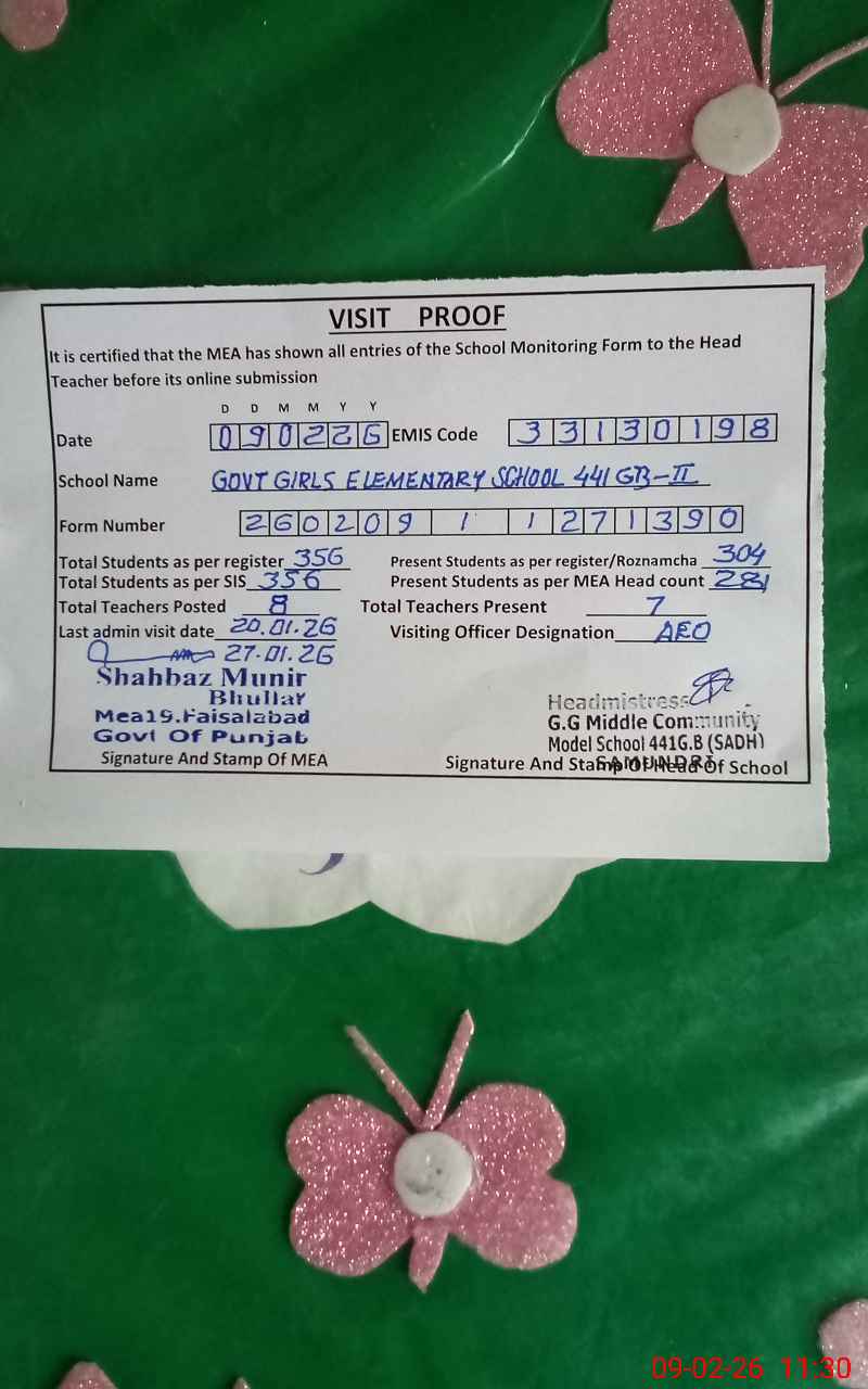 | EMIS Code: 33130198 | Name of School: GGES CHAK 441 GB II SAMUNDRI SOUTH | |||