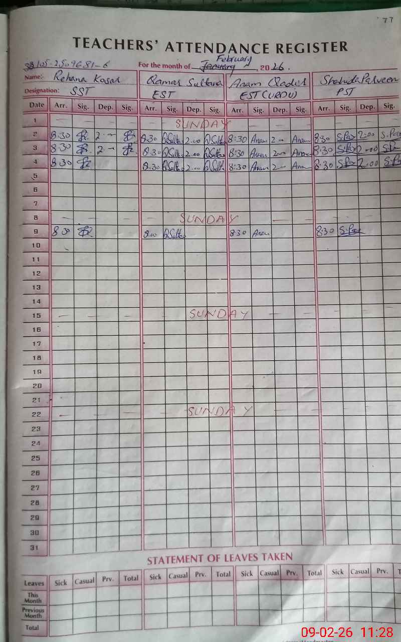 | 33**** | Sa**** Ak**** | PST Arts | Regular | 0 | 0 | 0 | 0 | 0 | 0 | 0 | 0 | 0 | Casual |