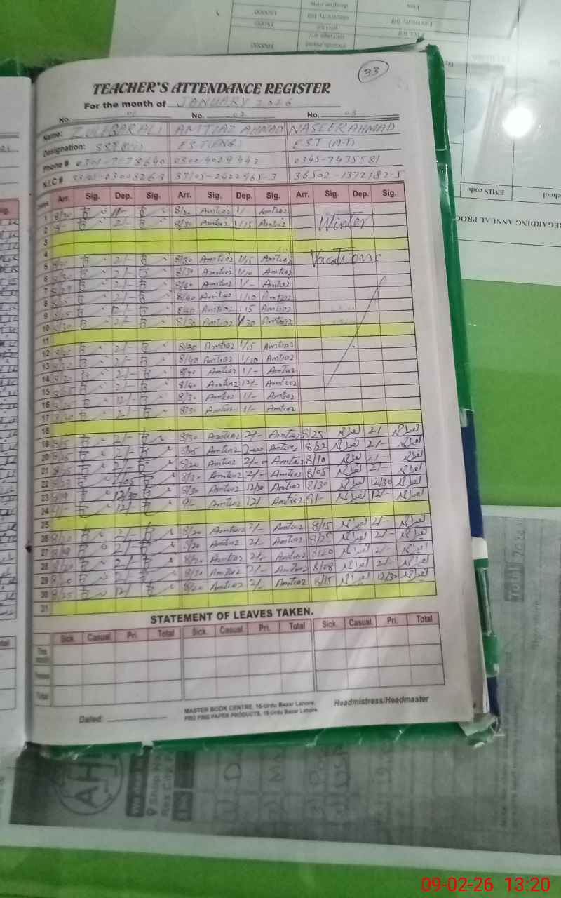 | Name: MU**** AF**** Designation: (School Headmaster's/Headmistress's) SST ( SCIENCE ) Phone/Cell Number: 03**** |