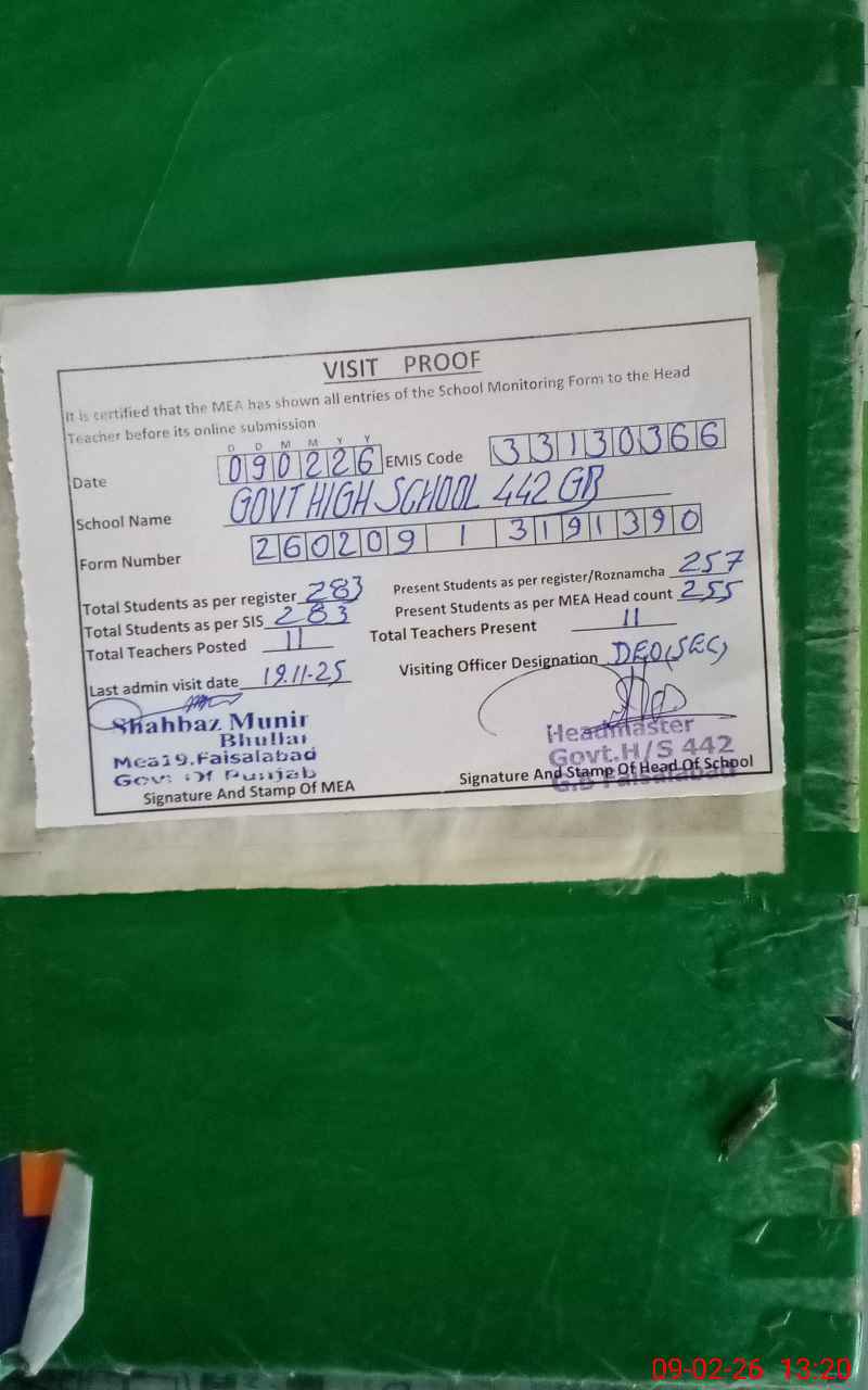 | EMIS Code: 33130366 | Name of School: GHS CHAK 442 GB SAMUNDRI FSD | |||