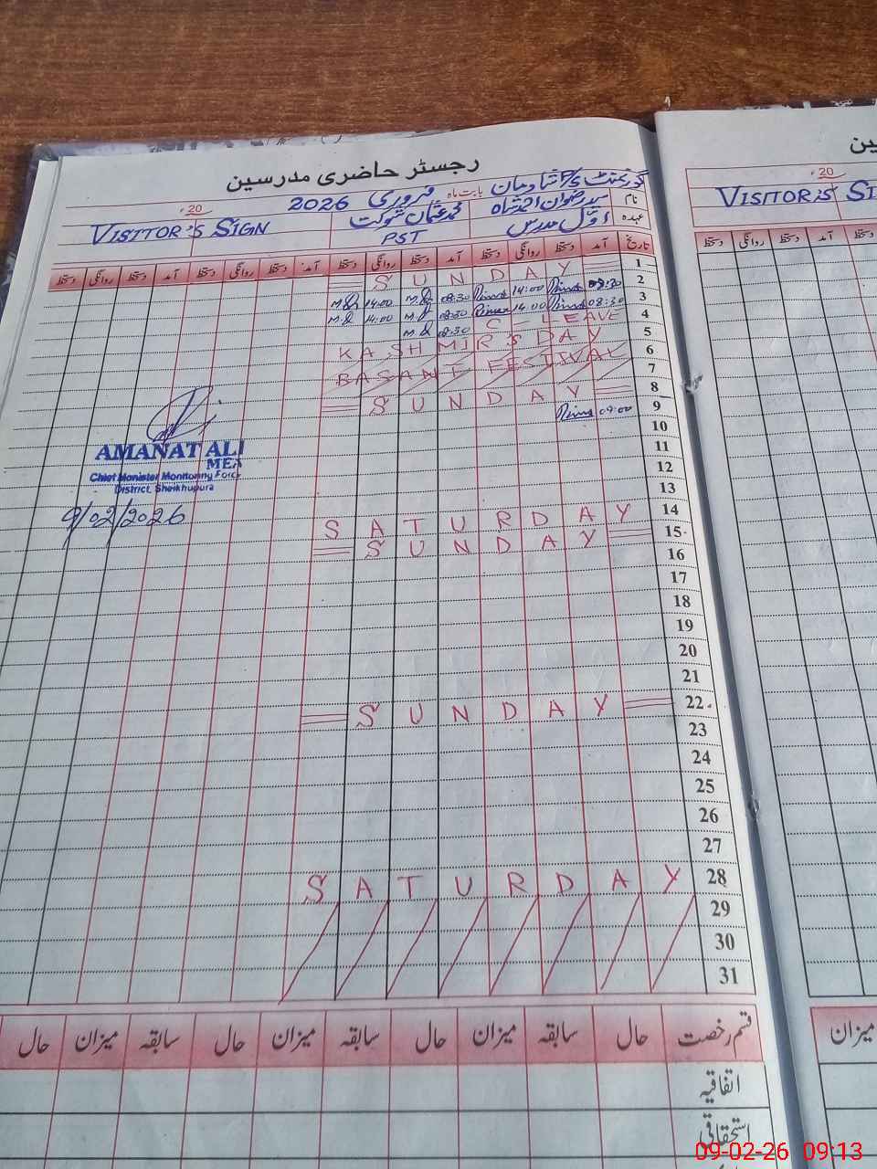 | Monitoring Date: 09-02-2026 | Start Time: 09-02-2026 09:00 AM | End Time: 09-02-2026 09:49 AM | Name of MEA: Am**** Al**** | |