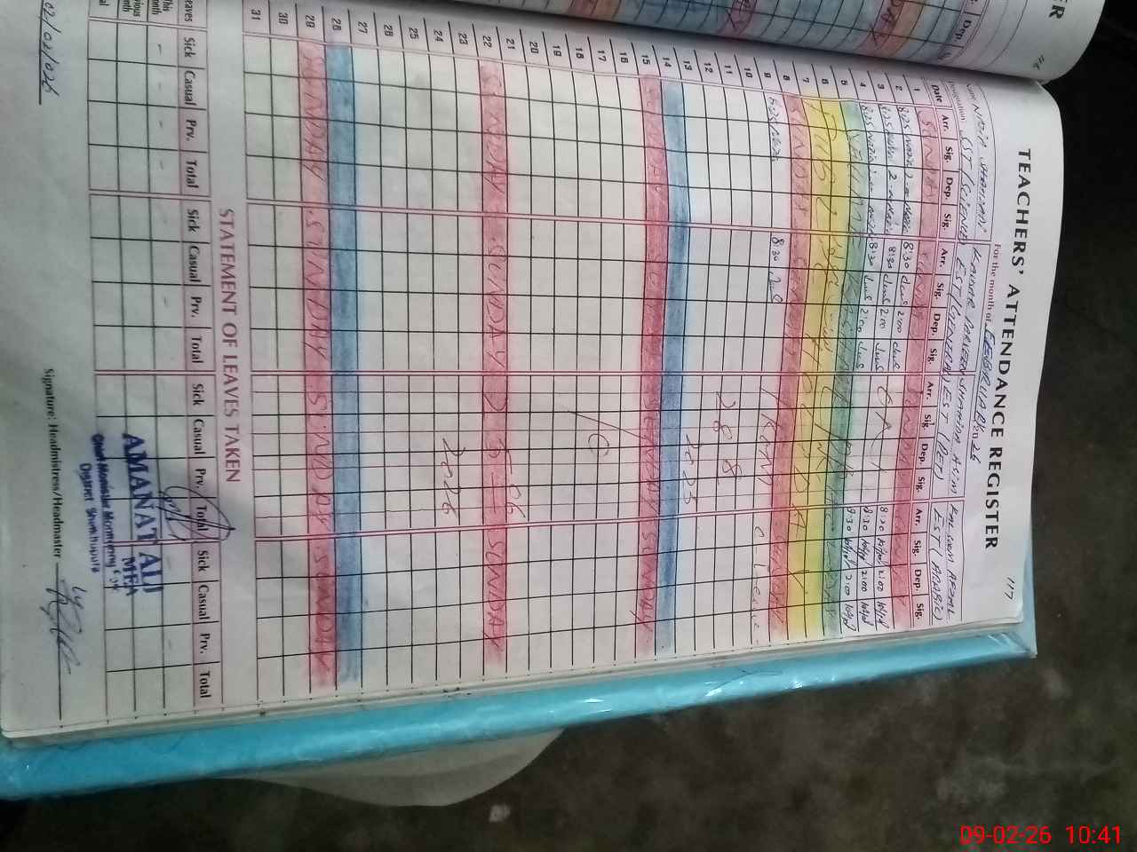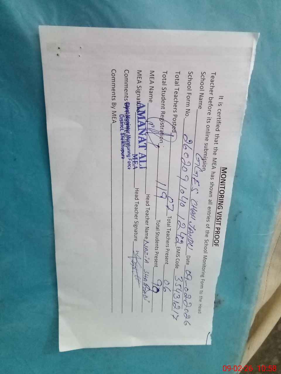 | Attendance Register | Head Teacher | MEA with School | Visit Proof |