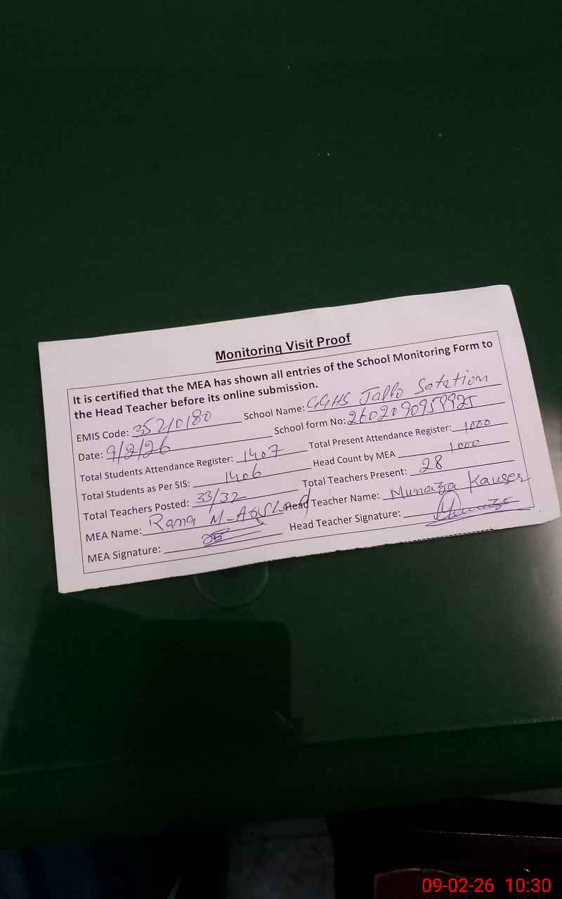 | EMIS Code: 35210180 | Name of School: GGHS JALLO STATION | |||