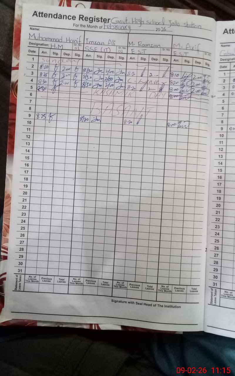 | Name: Mu**** Ha**** Designation: (School Headmaster's/Headmistress's) In charge H M Phone/Cell Number: 03**** |