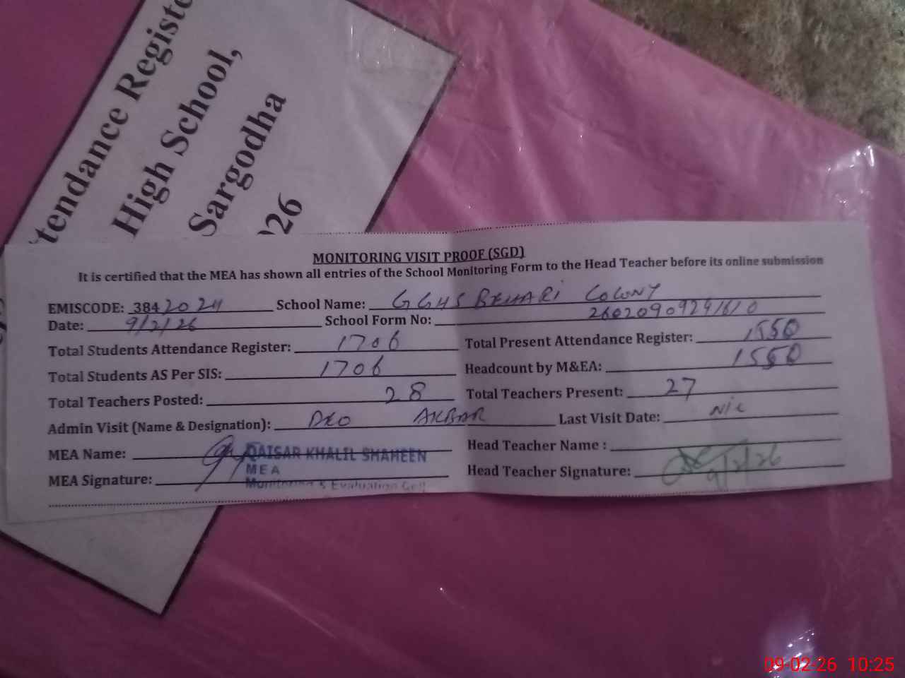 | EMIS Code: 38420211 | Name of School: GGHS MODEL BEHARI COLONY ISTAQLALABAD | |||