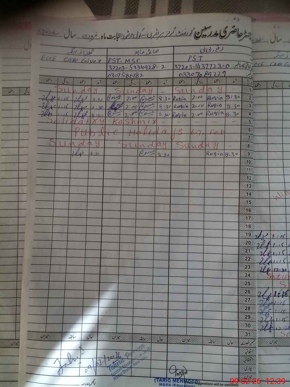 | Name: Ru**** Bi**** Designation: (School Headmaster's/Headmistress's) PST Phone/Cell Number: 03**** |