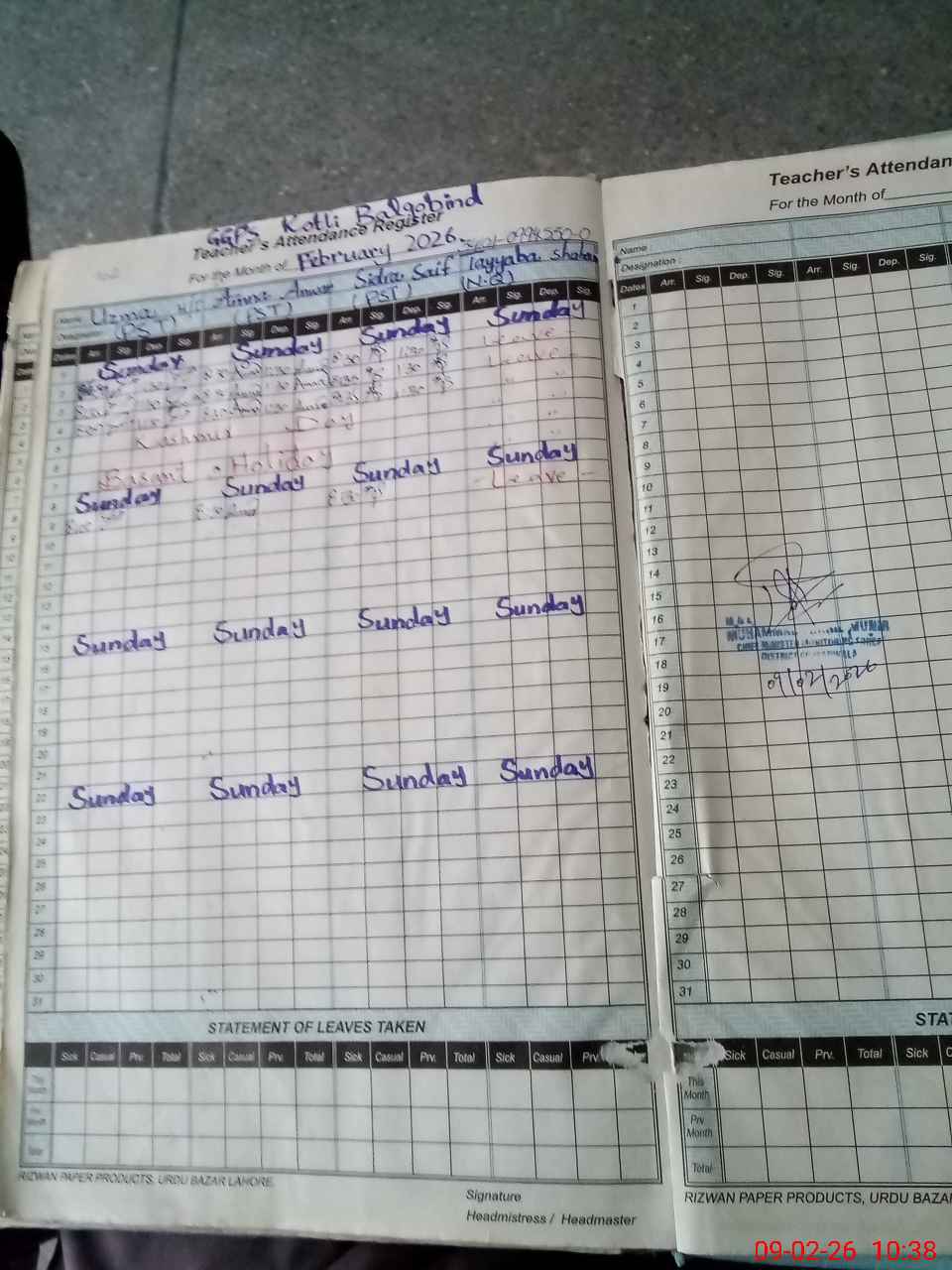 | Leave | Duty | Absent | Maternity | Medical | Ex- Pak |