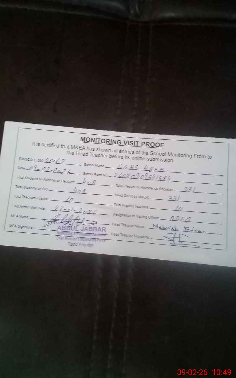 | Certified that this School was Inspected by the Undersigned MEA/DMO Today and the Information Stated Above is as Per Record. | |||||