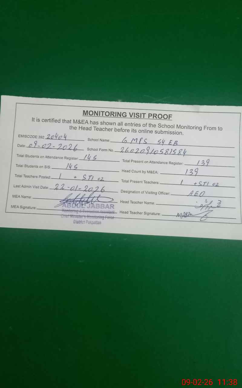 | EMIS Code: 39220404 | Name of School: GMPS 54 EB PO 50 EB | |||