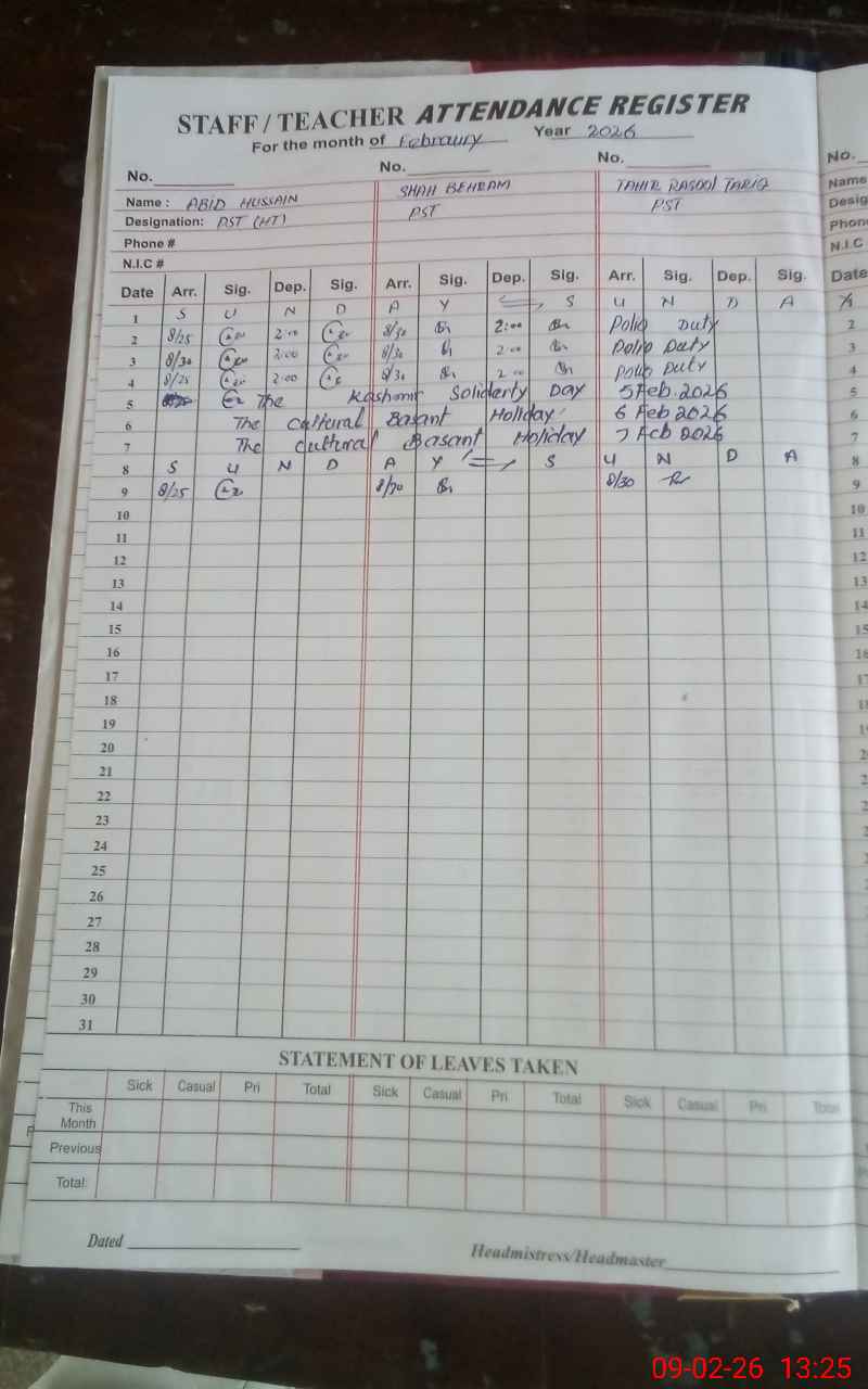 | Name: AB**** HU**** Designation: (School Headmaster's/Headmistress's) PST Phone/Cell Number: 03**** |
