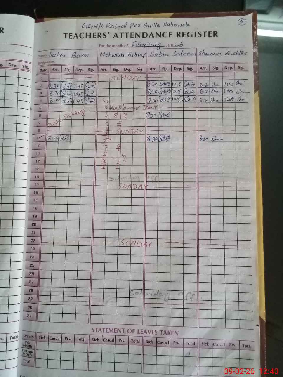 | 36**** | Me**** As**** | SST Science | Regular | 0 | 0 | 0 | 0 | 0 | 0 | 0 | 0 | 0 | Maternity |