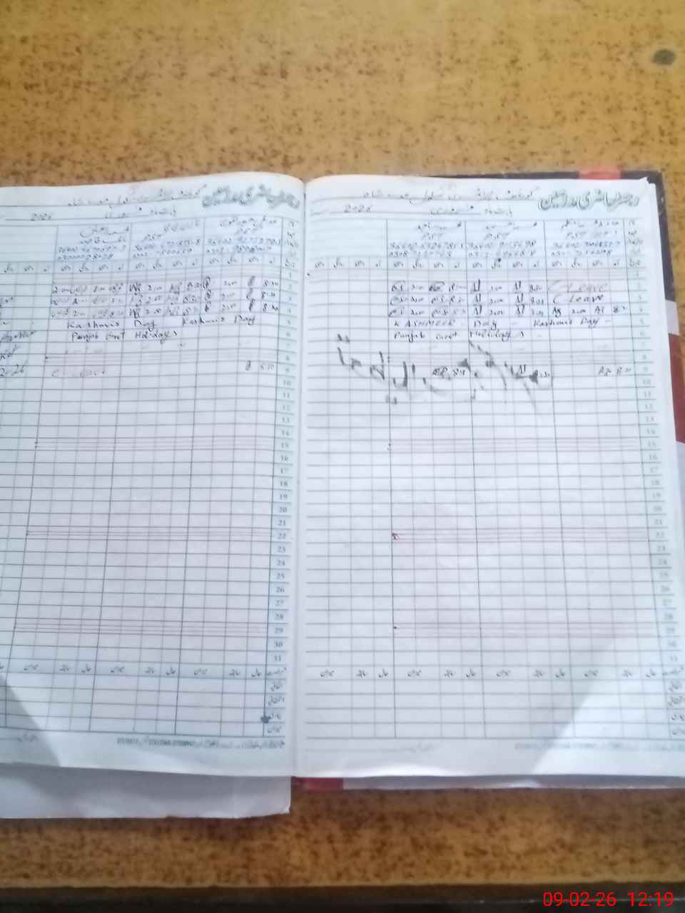 | CNIC | Full Name | Designation | R/C | Absence During Last Calender Month |