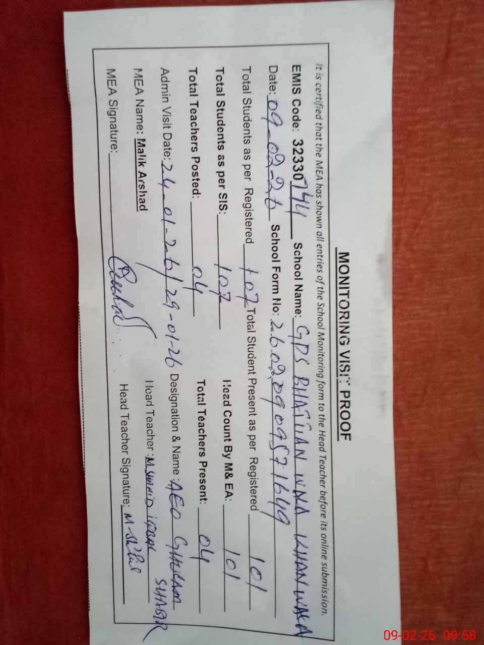 | EMIS Code: 32330744 | Name of School: GPS BHATTIAN WALA (KHAN WALA) | |||