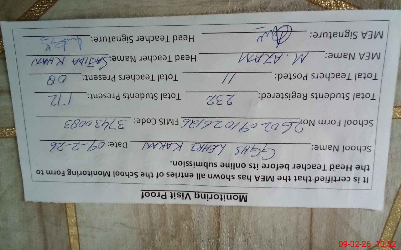 | EMIS Code: 37430083 | Name of School: GGHS LEHRI KAKAN | |||