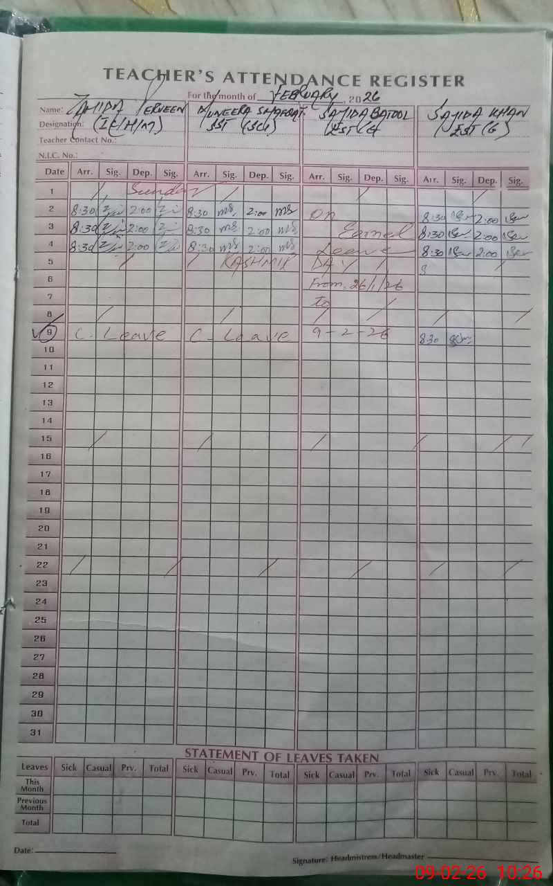 | 36**** | Mu**** Sh**** | SST Science | Regular | 1 | 0 | 0 | 0 | 0 | 0 | 0 | 0 | 1 | Casual |