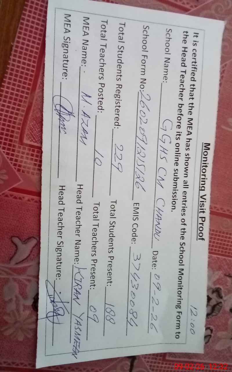 | EMIS Code: 37430084 | Name of School: GGHS CM CHANDU | |||