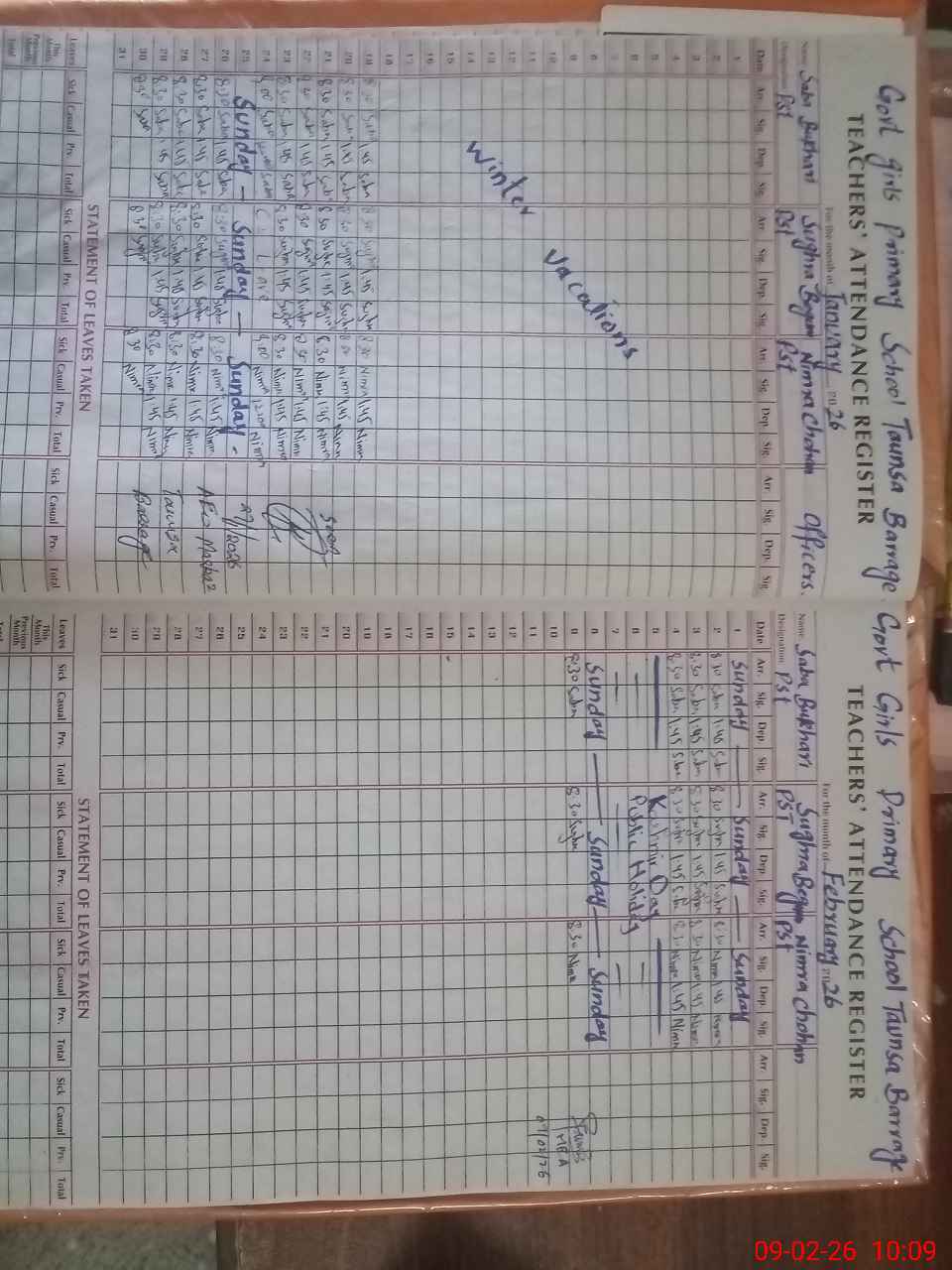 | Leave | Duty | Absent | Maternity | Medical | Ex- Pak |