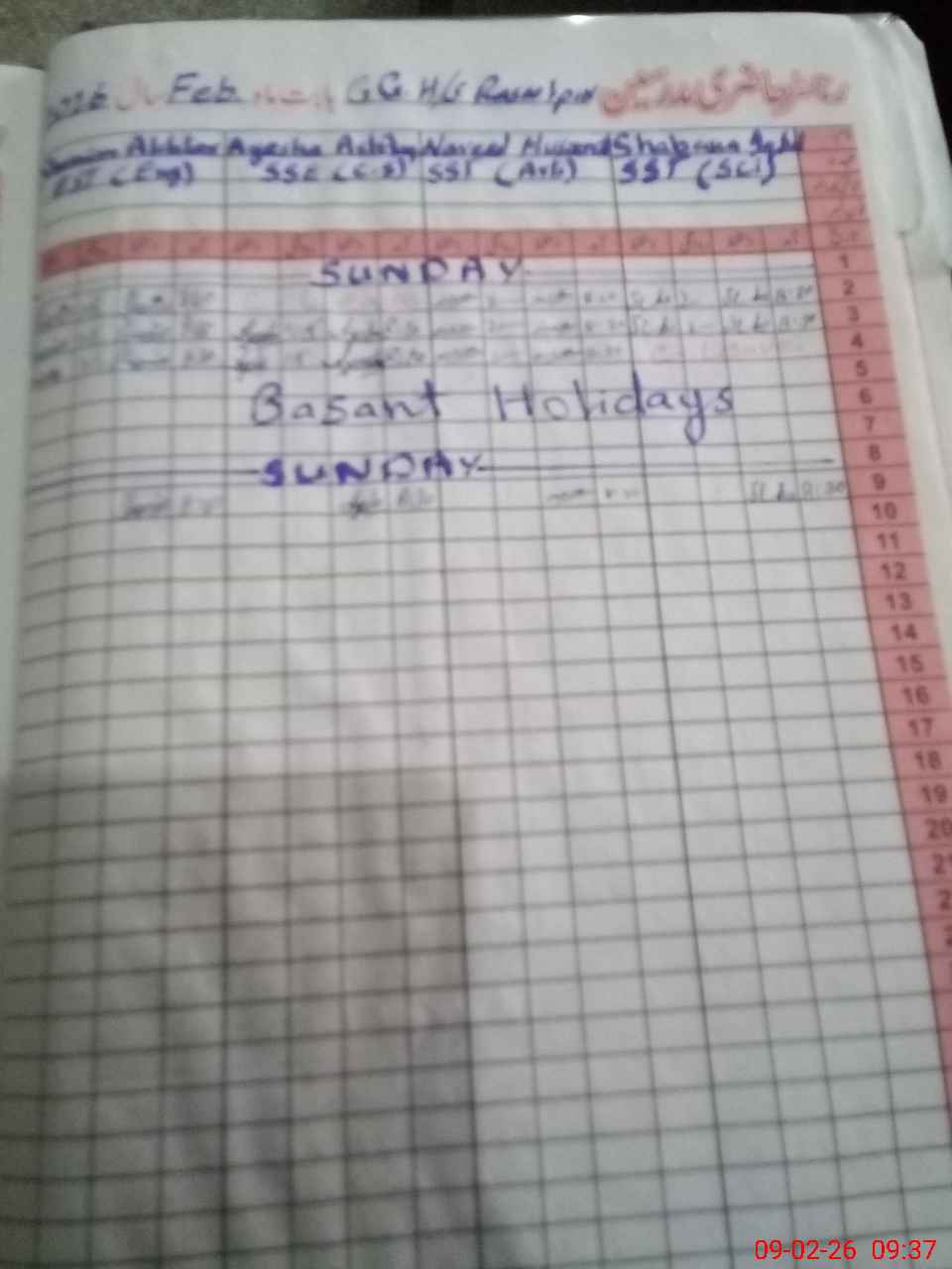 | EMIS Code: 39310114 | Name of School: GGHS RASOOL PUR | |||