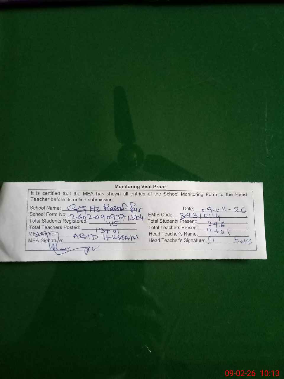 | Certified that this School was Inspected by the Undersigned MEA/DMO Today and the Information Stated Above is as Per Record. | |||||